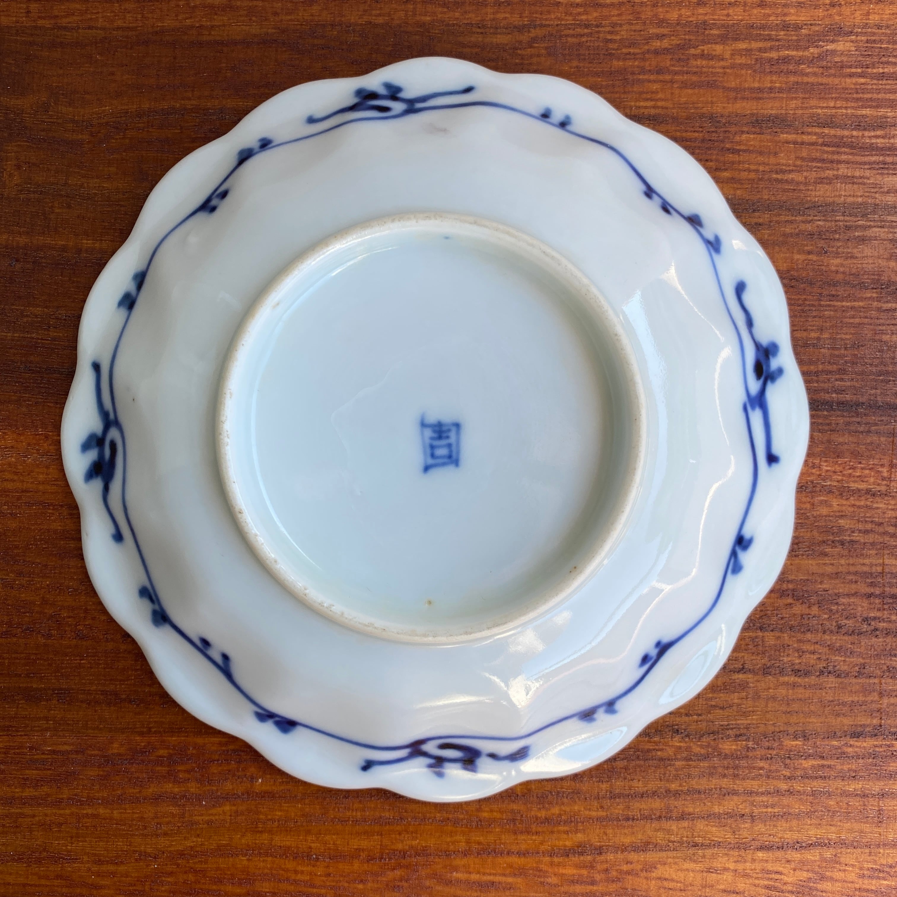 白地には淡いブルーで斜めの三筋チェックが描かれています。
