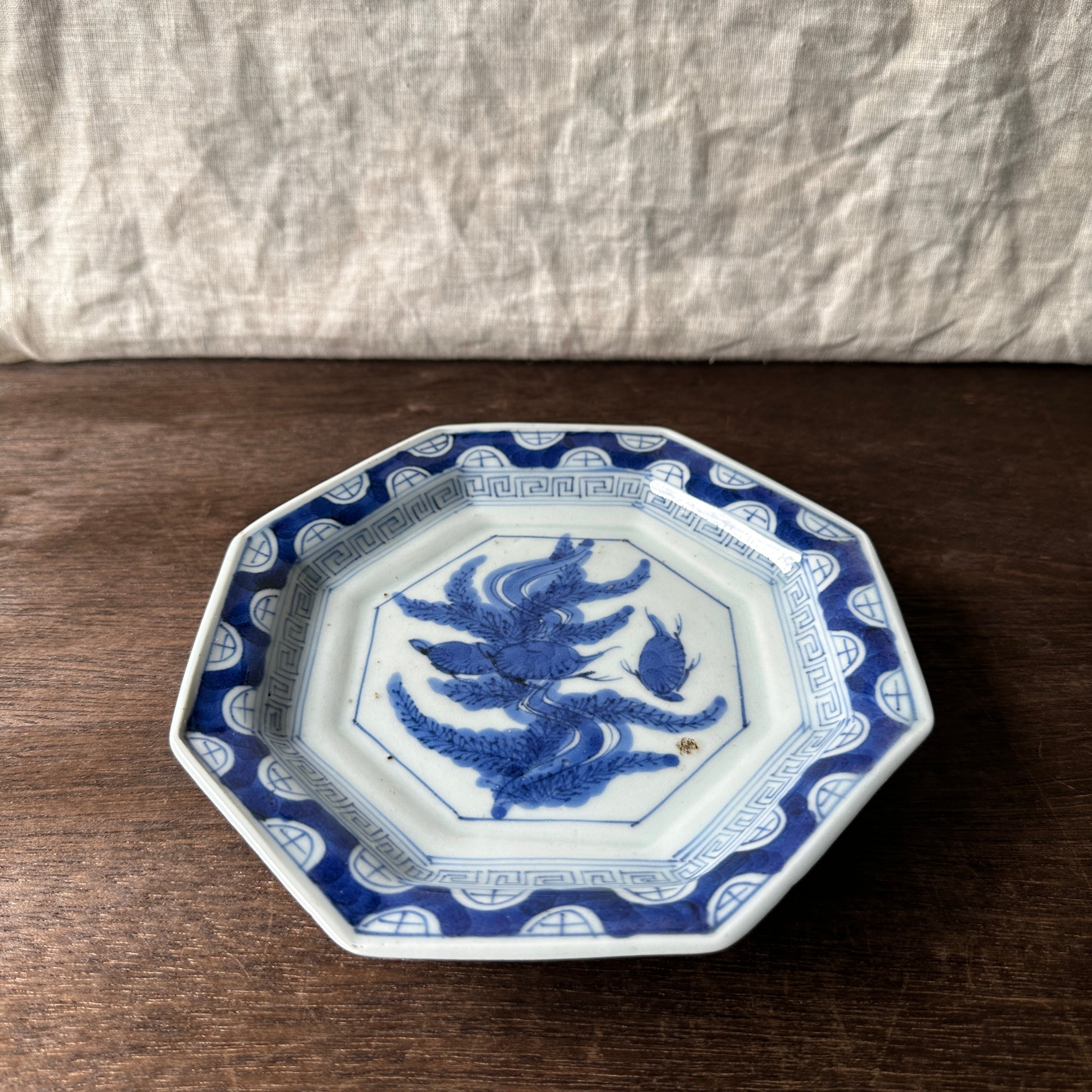縁起のいい八角形の染付皿 (B)